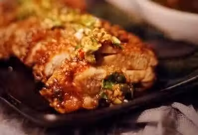 雞腿去骨,與所有調料混合均勻,腌制入味