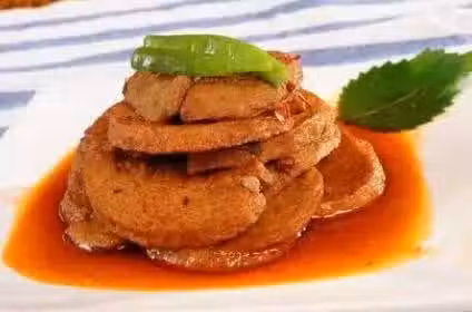 2、鍋內熱油,加入素雞中小火煎至兩面微黃,盛出。