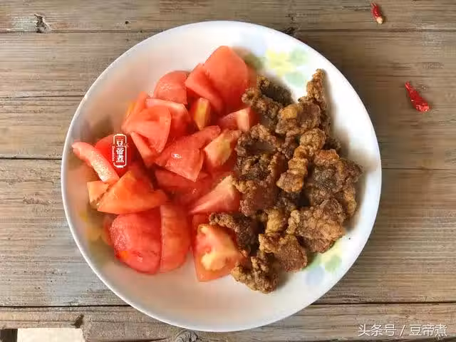 3、鍋熱油後爆乾薑片倒入番茄丁炒出茄紅素,然後老陳醋延鍋邊潑開灑入