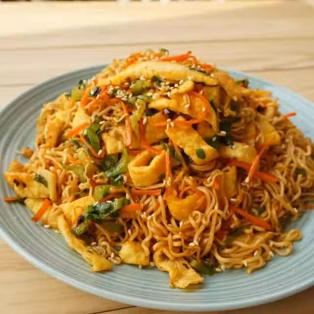 1、首先將麵餅放冷水泡開~(這樣泡開的面超起來超級爽口)面泡好以後瀝干水份。
