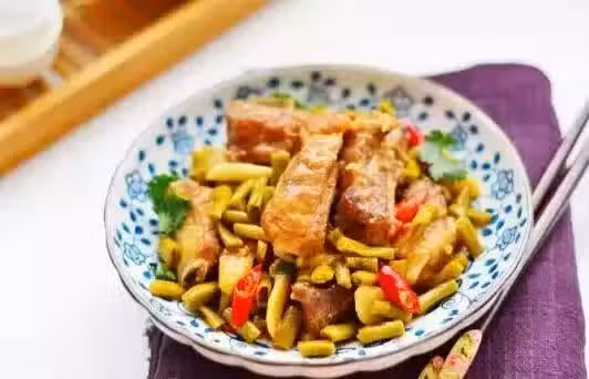 原料:排骨500克,酸豆角100克