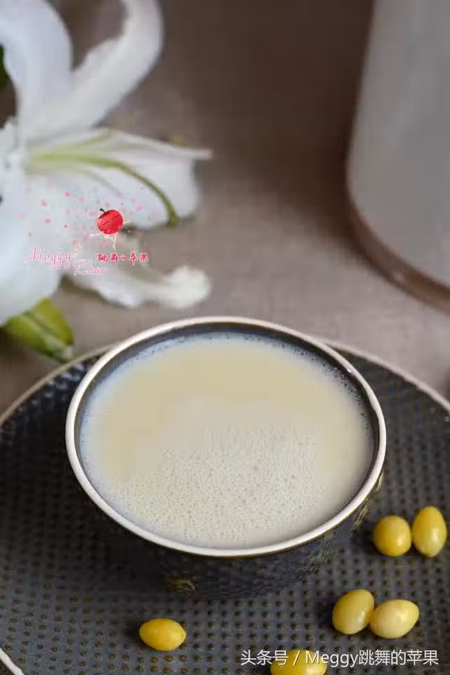 製作過程:黃豆洗凈,和白果同入豆漿機中,加涼水1100毫升左右,啟動「干豆漿」程序,只等新鮮豆漿做好啦!用泡好的黃豆會更香醇。
