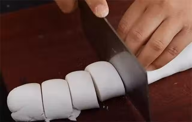 3.稍微的揉兩下揉勻,然後搓成長條,用刀切成小面劑。