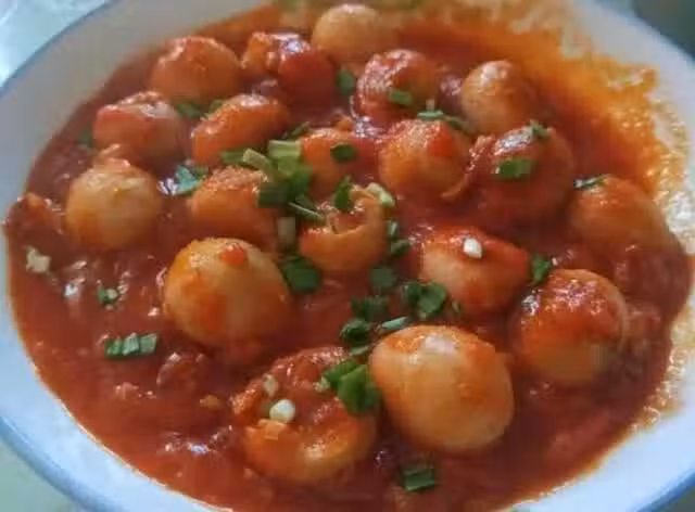 材料:鵪鶉蛋 10個、番茄2個、大蔥、薑末、鹽、食用油