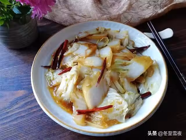 【酸辣白菜】所需材料:白菜1/2棵、油鹽適量、姜2片、大蒜2瓣、花椒20粒、干辣椒10個、生抽1湯匙、米醋1湯匙、
