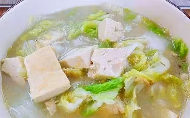 材料:白菜,豆腐,姜,蒜,香蔥,鹽,雞精