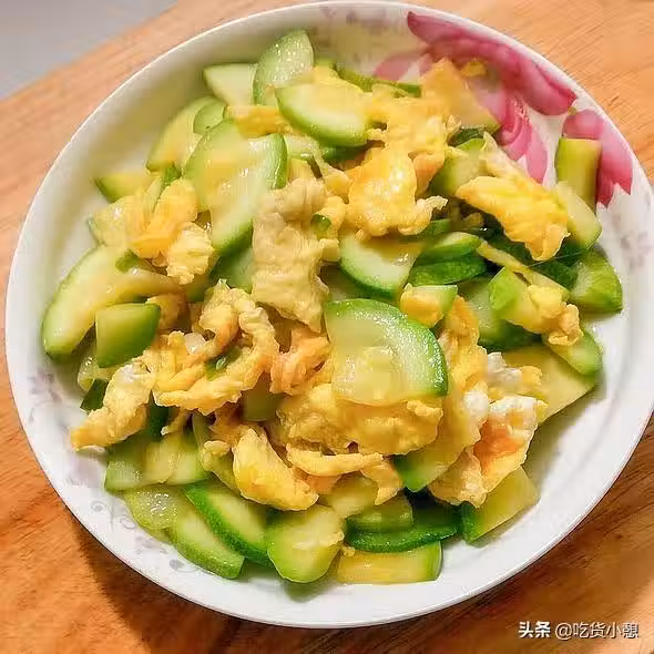 5、放入之前炒好的雞蛋,加上鹽,翻炒片刻,至西葫蘆變軟,加入雞精,翻炒均勻後,出鍋即可。