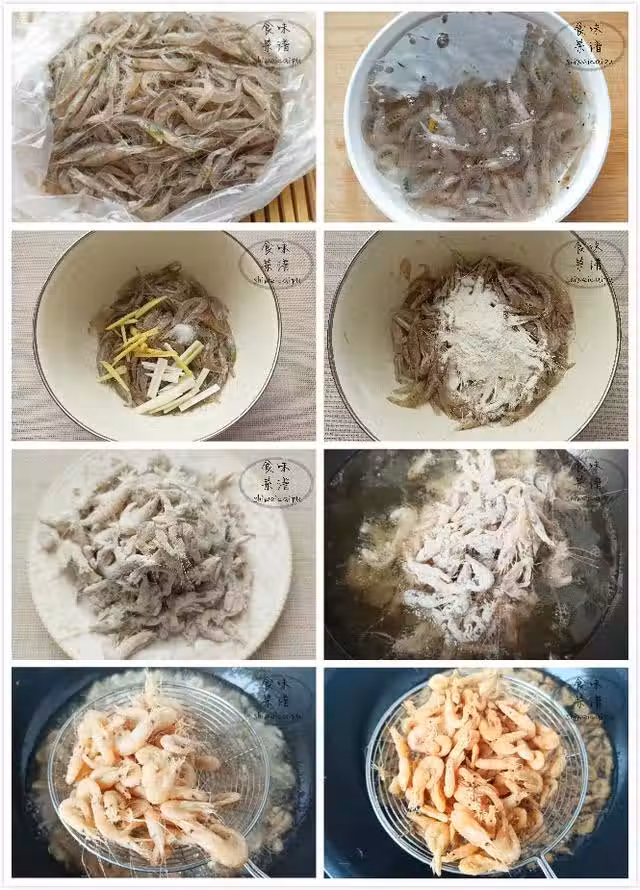 6、繼續升高油溫,放入河蝦二次復炸,把時間控制好,20秒鐘後立即撈出。