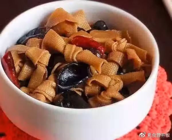 1、豆腐結用熱水泡一下,黑木耳提前泡發。