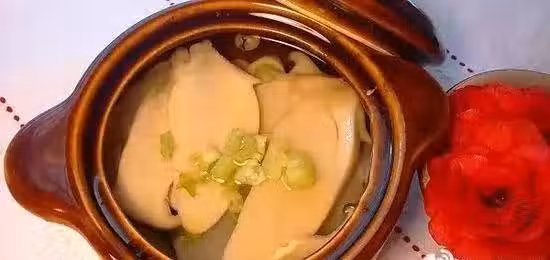外鍋放約一碗水,開始燉煮,電鍋跳起後,加入香菇粉、芹菜珠、香油即可。