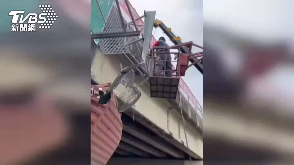 就在前方不遠處,找到脫節的車頭,地點就在國1南下303公裡的麻豆路段,上午10點多,這輛半連結貨櫃車行駛到一半時,貨櫃不明原因彈起,直接撞上標誌牌,導致貨櫃卡在跨越橋和中線車道中央,還因為沒辦法即時吊離,出動切割器具切除