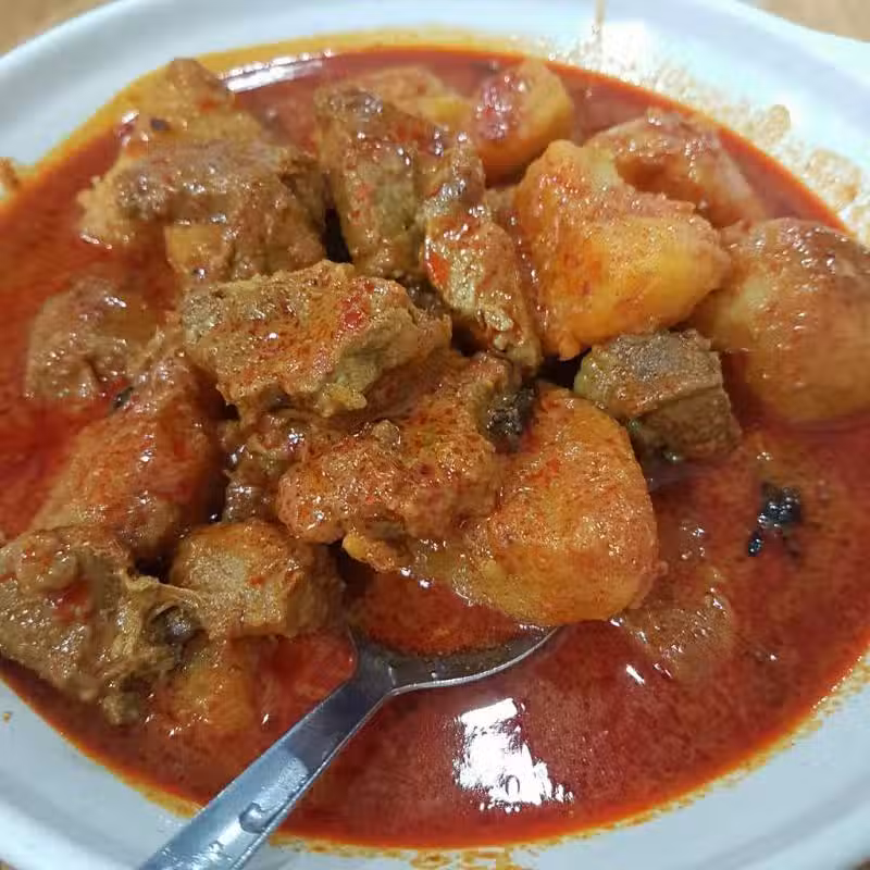 材料:山豬肉(洗凈切成小塊)、椰奶1盒、馬鈴薯5粒、蒜米3粒,小蔥頭5粒(切碎)、咖喱葉、桂皮2條、即煮加里料1包、清水、鹽巴些許。