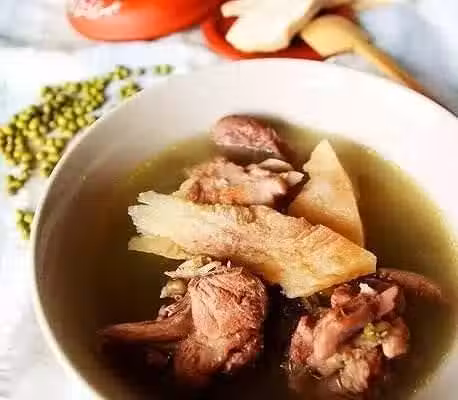 原料:老鴨、綠豆、土茯苓、姜、陳皮、鹽