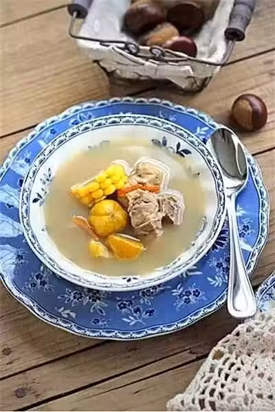 原料:脊骨500g、板栗200g、甜玉米1個、陳皮2g、老薑1小塊、鹽少許