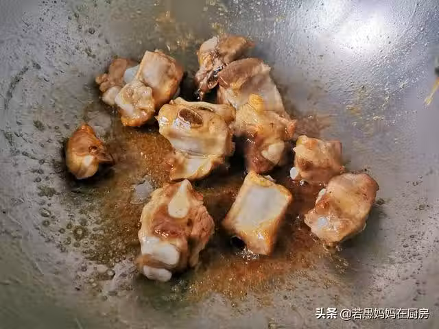 6、倒入調好的料汁翻炒均勻,大火煮開,糖醋味就就散發出來了。