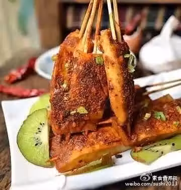 原料:豆腐乾、芝麻醬、辣椒粉、花椒粉、五香粉、生抽、孜然粉