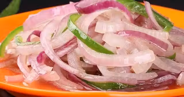 150克洋蔥、15克青椒、3克鹽、2克雞粉、各適量水澱粉、食用油