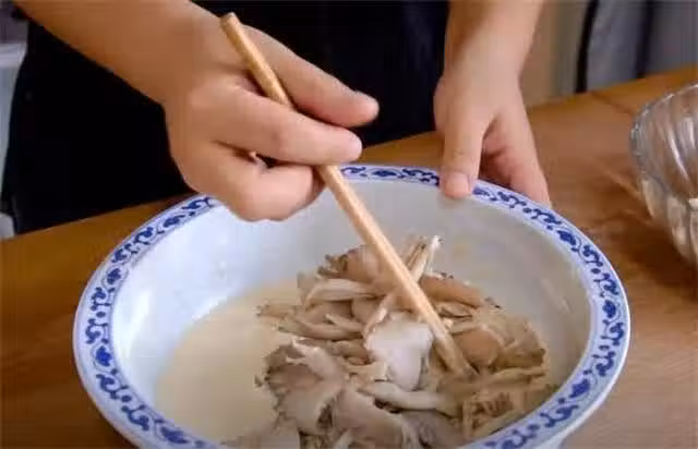 教你飯店炸蘑菇做法,只用麵粉還不夠,掌握黃金比例,酥脆不油膩