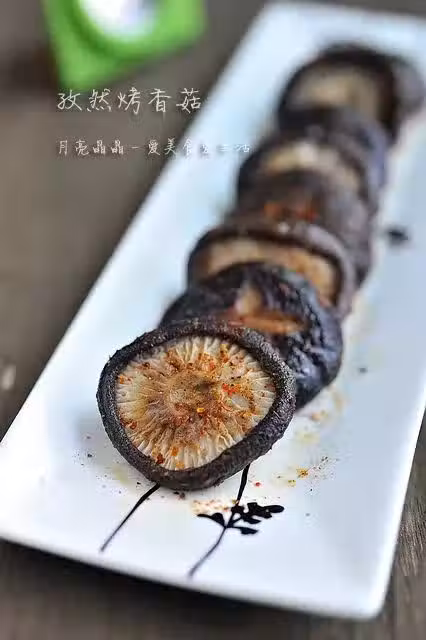 3. 鮮香菇放大碗里,先均勻撒上鹽,顛勻。接著撒上孜然粉、辣椒粉和黑胡椒粉拌勻,最後倒入橄欖油,拌勻。
