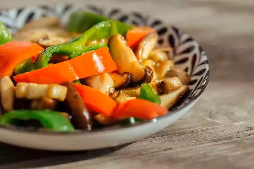1. 蘑菇洗凈後切片,青紅椒取少量