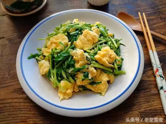 【蒜苗胡蘿蔔炒雞蛋】材料:雞蛋3個、蒜苗300克、油鹽適量、蔥1段