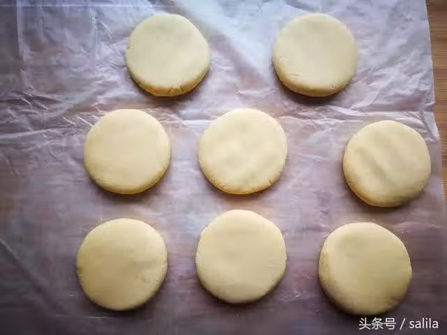 6、平底鍋放少許花生油,將劑子一個個放入鍋中,開中小火烙,底部定型後再翻面繼續烙熟。小餅的中間微微鼓起來就表示熟了。