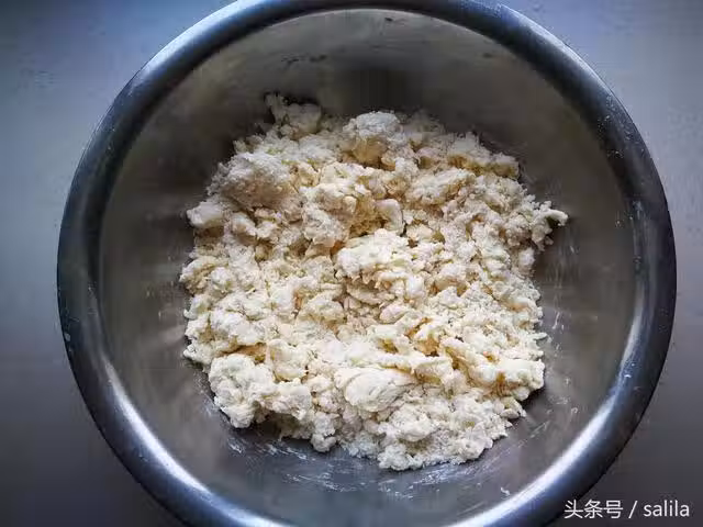 2、和成一個柔軟的麵糰,將麵糰揉光滑蓋上保鮮膜放在一邊靜置。麵糰和的軟一點餅做出來的口感要更軟和一些。