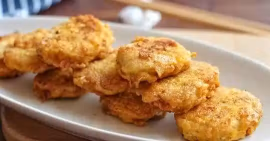 【家庭版煎雞塊】食材:雞胸肉500克、雞蛋三個、白醋一茶匙、生抽兩大勺、鹽少許、麵粉適量做法:
