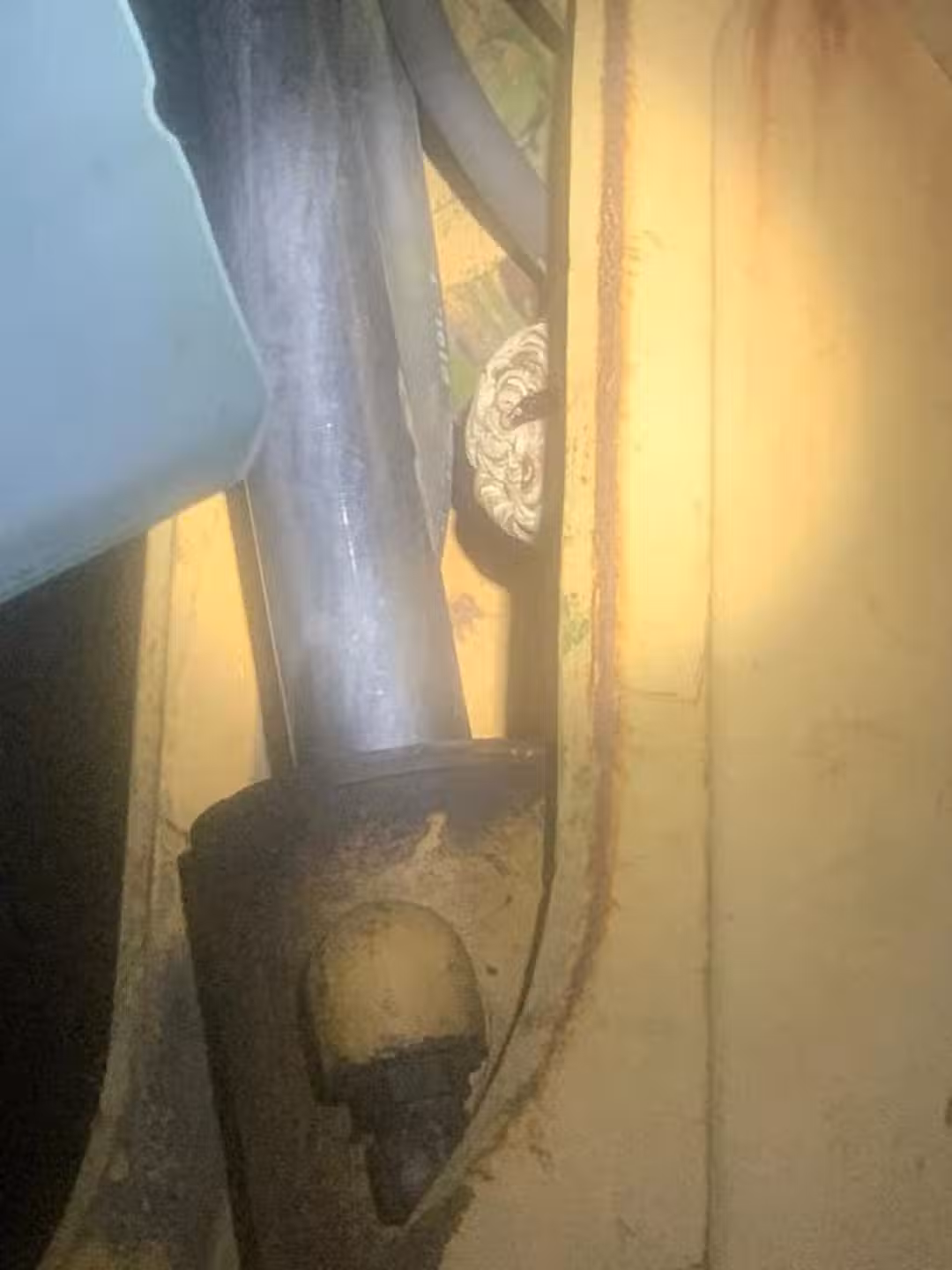 虎頭蜂窩藏在久未使用的推土機上。