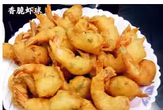 材料:中蝦300克,青蔥粒1湯匙,粟米粉100克 醃料:蘇打粉半茶匙,鹽1茶匙i,胡椒粉1茶匙,糖1茶匙 脆漿: 自發麵粉200克,粘米粉10克,清水200–250毫升,油1湯匙半,原味Eno半包,鹽1茶匙【不要太濃或太稀,蝦沾上後可慢慢滑下即可】 做法: 1.將蝦去殼留尾,加入醃料半小時,待用。2.將脆漿的材料全部混合均勻,加入青蔥個混合均勻。3.將醃好的蝦沾上粟米粉,再沾上脆漿,放入熱油中,以中火炸至金黃色,瀝幹油即可。