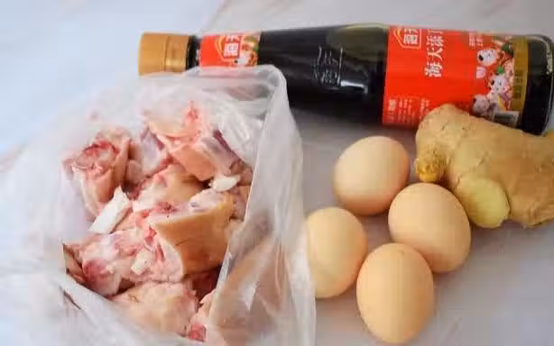 製作方法:1、豬腳斬成小塊洗凈,冷水下鍋,放入豬腳,大火煮開後撈出浮沫,再撈出豬腳瀝干水分備用,老薑去皮切片