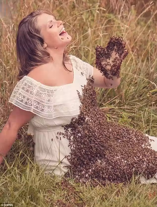 準媽媽「讓2萬隻蜜蜂爬滿孕肚」拍獨特孕婦寫真!預產期前6天「寶寶卻不動了」:只被螫3次...