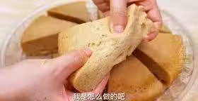 趁熱給取出來,放在案板上,用刮刀圍著邊緣刮上一圈倒扣,就能夠輕鬆的脫模了。放涼以後,把馬拉糕切成自己喜歡的形狀,就可以上桌開吃啦。