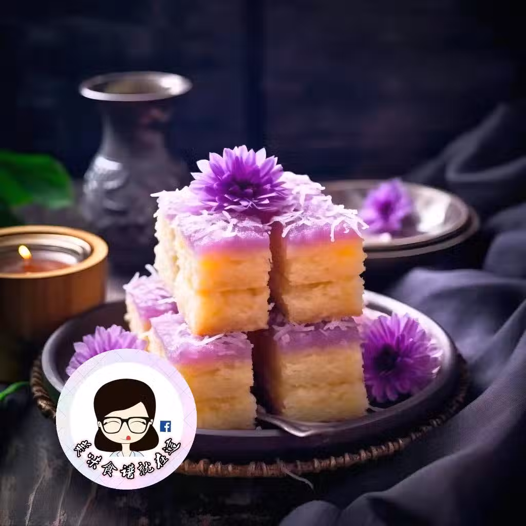 7、取出蒸好的糯米椰蓉紫薯糕,待涼後切成塊狀即可食用。