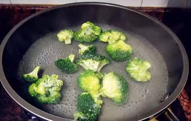 西藍花提前加鹽焯水,瀝干水準備擺盤用。