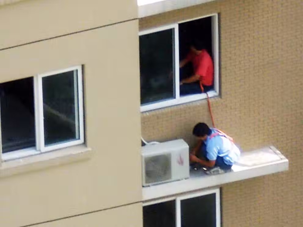 現在一些開發商會在陽台的窗戶的下邊安置一個凸出的空調外機台,這樣就能方便安裝師傅安裝了,而且不管對外機還是安裝師傅來說都非常安全。