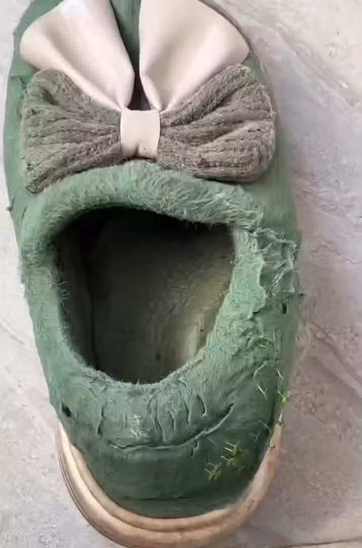這名來自中國湖南懷化市的人妻王小姐表示,近期她回娘家住了一個月,回家後老公得意洋洋表示,他把冬天的棉拖鞋都洗了,王小姐到洗手間一看,發現還有一雙打濕的棉拖放在那,結果拿起來一看發現棉拖鞋上竟然都發芽了,一株株鮮綠的幼苗冒出頭來,讓她大感傻眼www