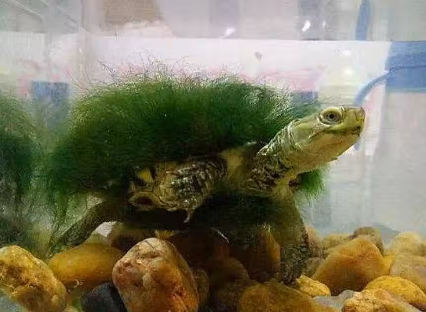 烏龜背上長25厘米綠草,主人看不慣想剪掉,卻被好友大罵太無知