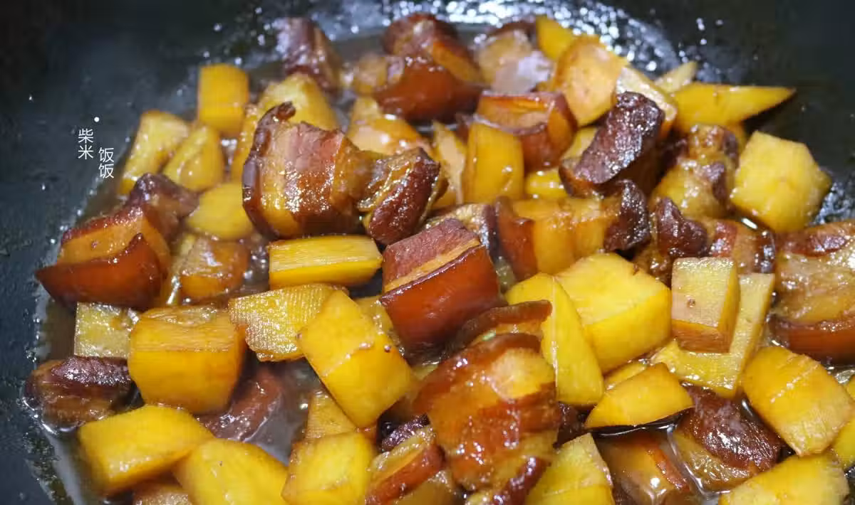 土豆吸收了五花肉的油脂,紅燒肉軟糯入味,香而不膩。舀幾塊放在米飯里,再淋些湯汁進來,拌一拌香極了。沒有多餘的香料味,即使是挑食的孩子也會愛上這味道。