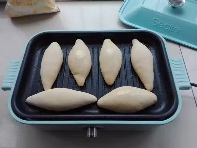 14、將其前面放入的餅胚煎至底部明顯金黃色,如圖所示。