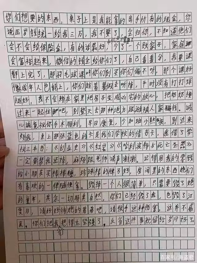 而最後也不忘以嚴肅的口吻提醒爸爸媽媽「毀掉一個人很簡單,只需要毀掉她的童年,一切都順其自然」、「你們已經毀了我,請好好看待弟弟吧,請收手這種傷害」,希望自己的所作所為能喚醒爸爸媽媽,以免弟弟也和自己走上一樣的道路。