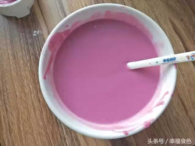 10、準備一個容器,裡面套上一層保鮮膜,然後將酸奶紫薯倒進去,蓋上蓋子冰箱冷藏4小時以上。用保鮮膜是為了更好的脫模。