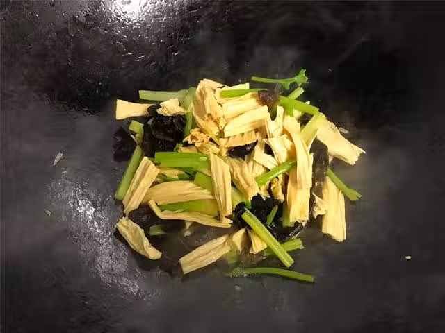 6、吃起來口感清爽,嫩滑勁道又沒有硬芯,鮮美又營養的黑木耳芹菜腐竹。