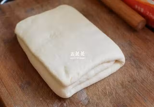 10、摺疊好的麵糰擀成長方形面片,切成長條,表面撒雞蛋液和白芝麻。