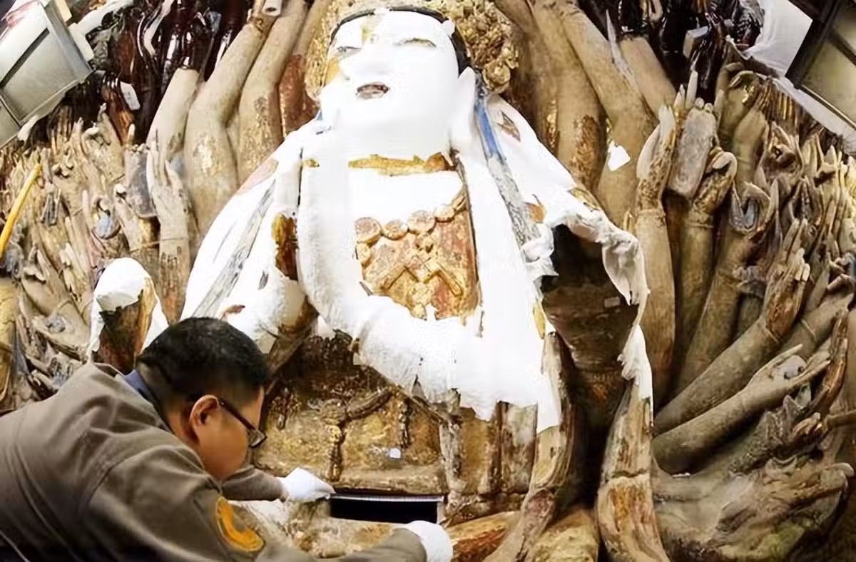 由於歷經了千百年風雨的侵蝕,壯觀的千手觀音造像也出現了破損。在修繕過程中,工人們無意間觸發了觀音像上的機關,專家將其打開後,在場所有人都熱血沸騰...
