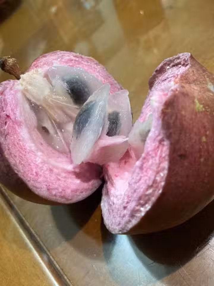 原PO表示果肉吃起來沒什麼味道也不甜,吃進嘴裡後也沒什麼肉,「味道有一點點像龍眼,口感有一點點像荔枝」不少人看了照片以為是山竹:「很像山竹欸」、「看起來不好吃樣的『山竹』」、「看似冷凍山竹」;還有網友搞笑地說「我剛剛以為是粉紅色的蛤仔」、「以為是狀元糕」、「好像眼睛」、「包錯的水晶餃」、「蛤蜊啊」