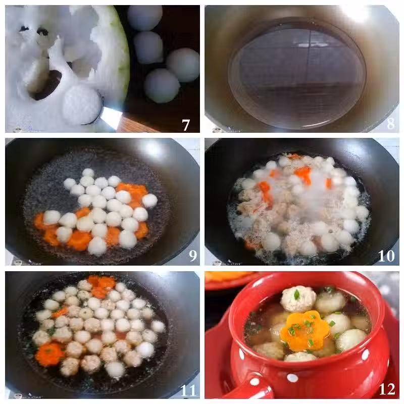 9、加入冬瓜球和胡蘿蔔花朵煮兩三分鐘。