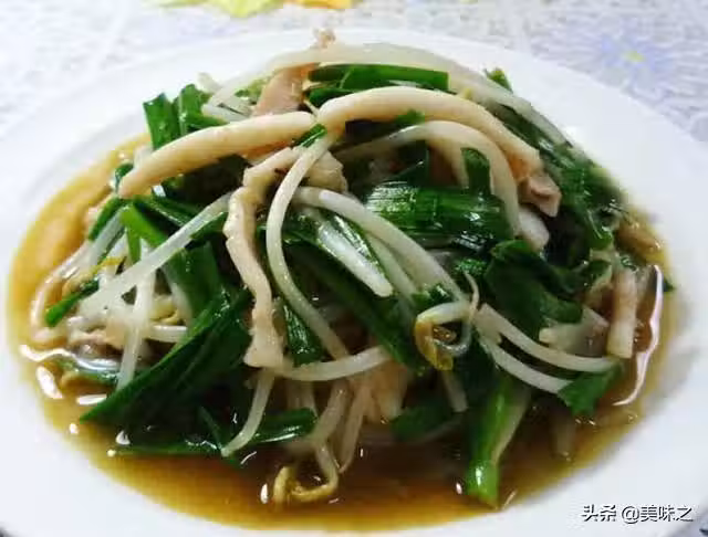 韭菜60克、魷魚3條、綠豆芽300克、料酒適量、鹽適量、雞精適量。