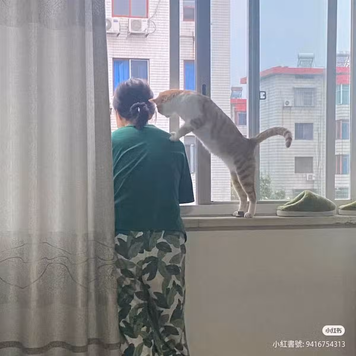 虛驚一場的原PO哭笑不得,默默地退回「最初目擊」的位置,並拍下老媽「跟貓談心」的奇葩姿勢、迷惑行為,她也透露媽媽跟貓咪說的:「等到了冷天我們再買榴槤吃,也給(貓)寶寶吃一塊~」,嗯,貓是親生的無誤XD