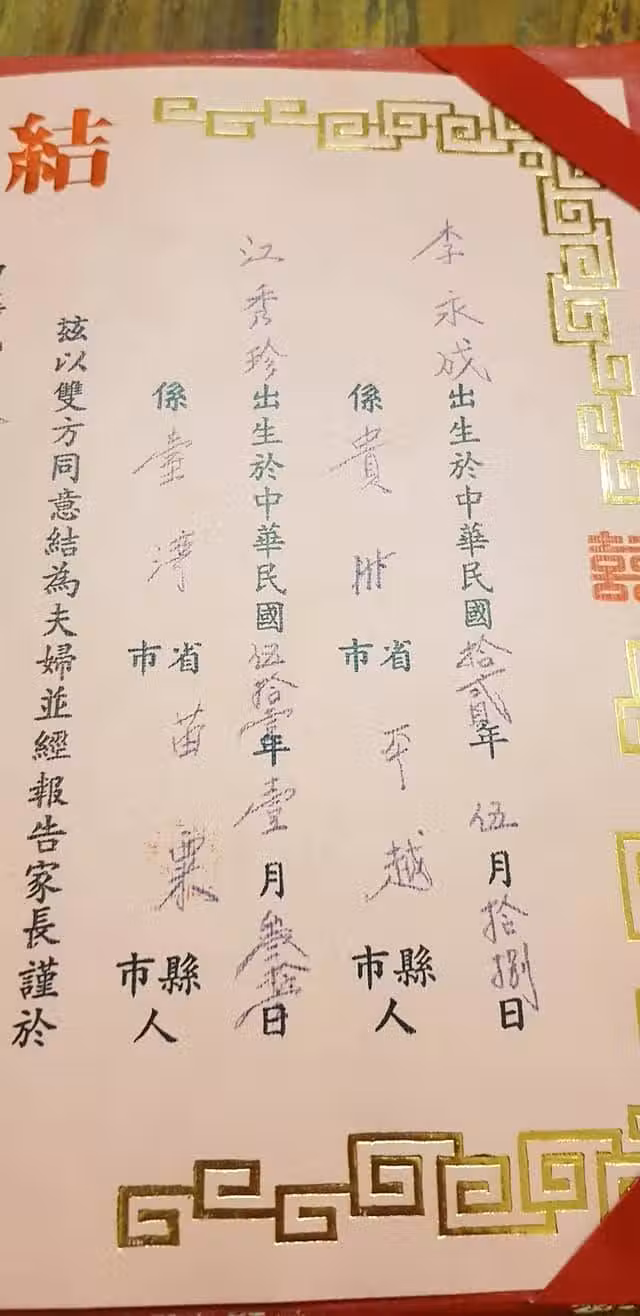 民國68年結婚證書!網友驚見「爸爸娶小39歲老婆」:也太神勇 再看總禮金「瞬間倒吸一口氣」
